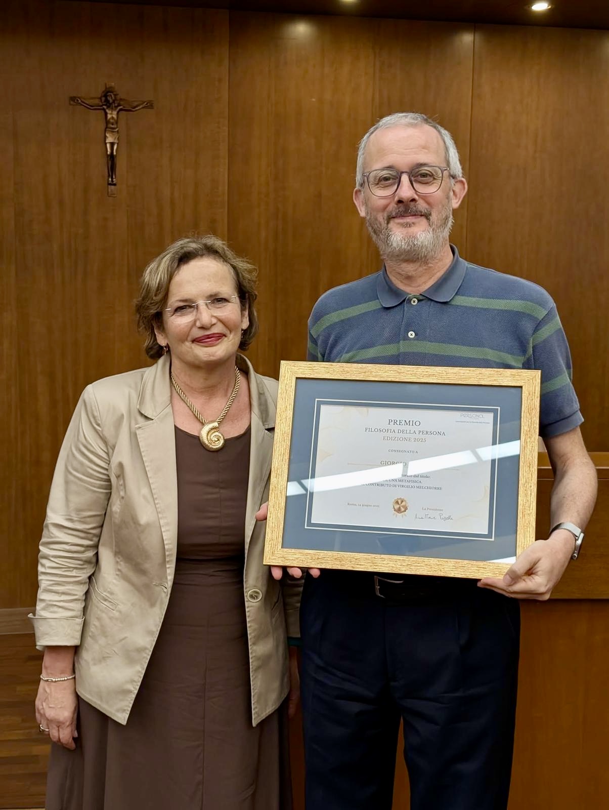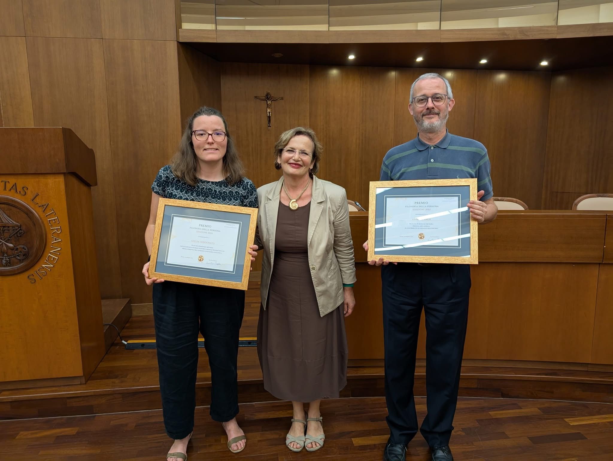 Martedì 24 giugno, presso la Pontificia Università Lateranense di Roma, sono stati consegnati i riconoscimenti relativi all’edizione 2025 del “Premio Filosofia della Persona”, promosso dall’Associazione Persona al Centro – Associazione per la Filosofia della Persona. Tra i vincitori figurano Giulia Codognato e don Giorgio Aresi, entrambi premiati per la qualità delle loro tesi di dottorato. Don Giorgio è parroco di Salce e docente incaricato presso il Liceo Lollino.