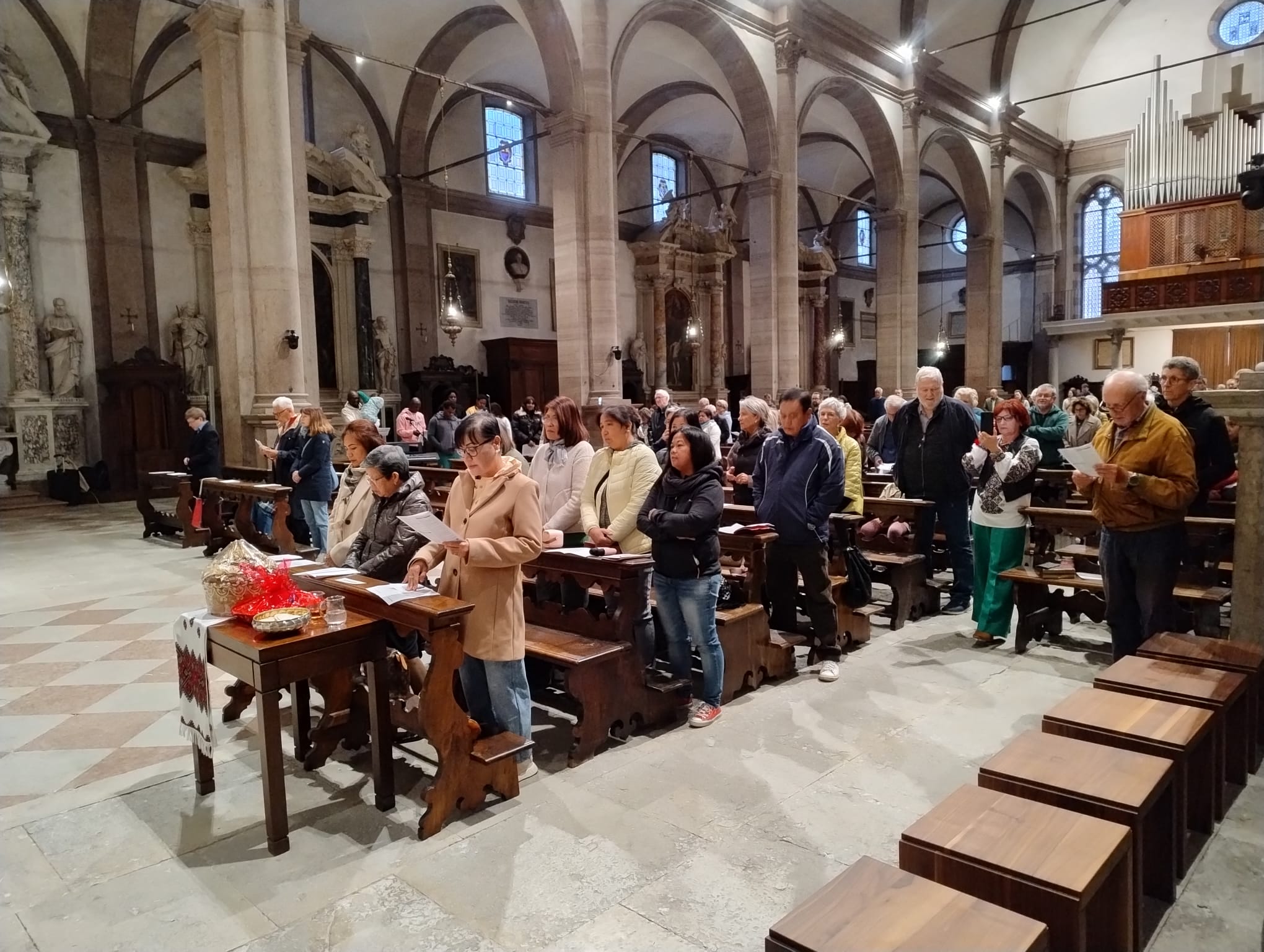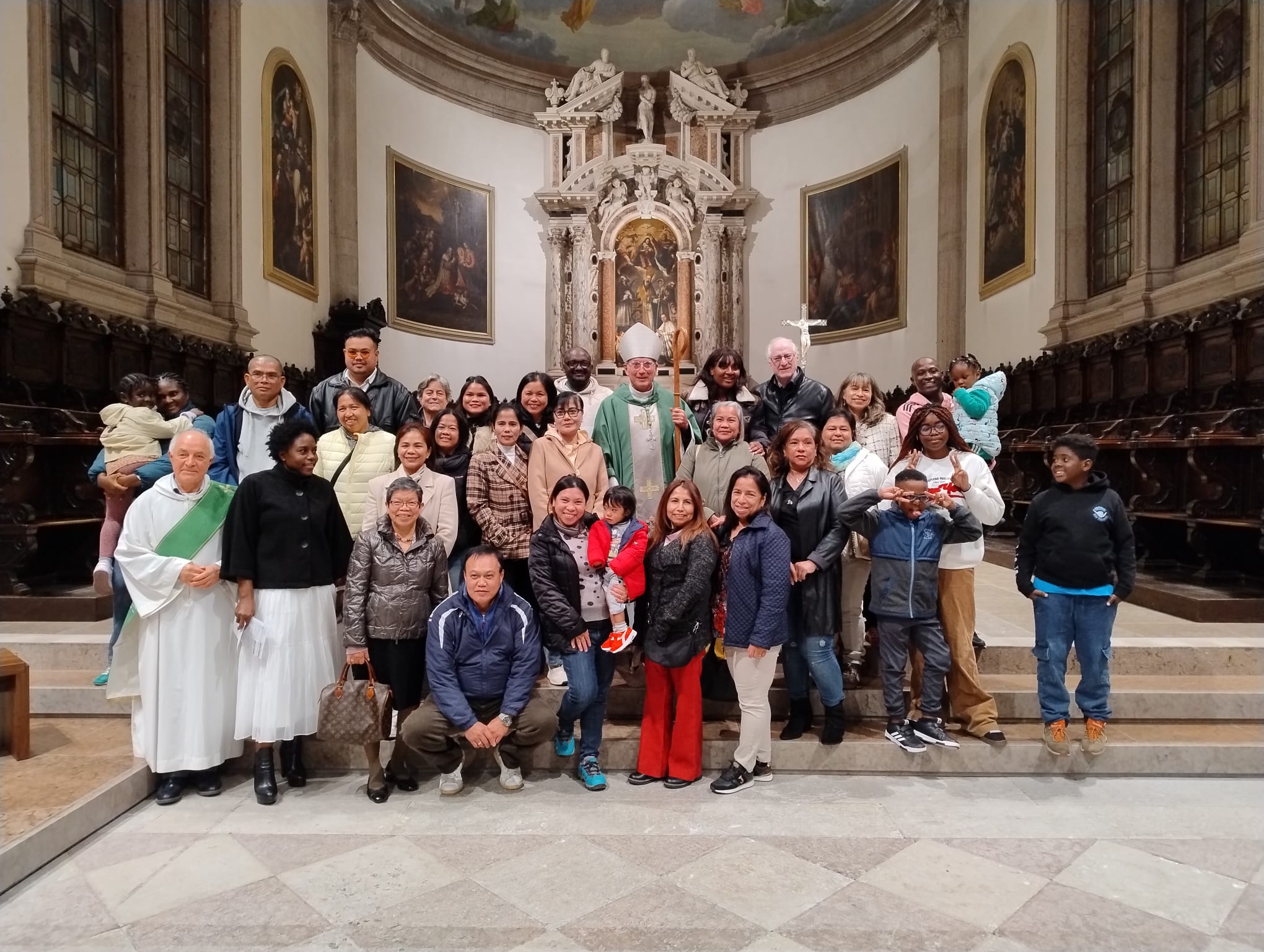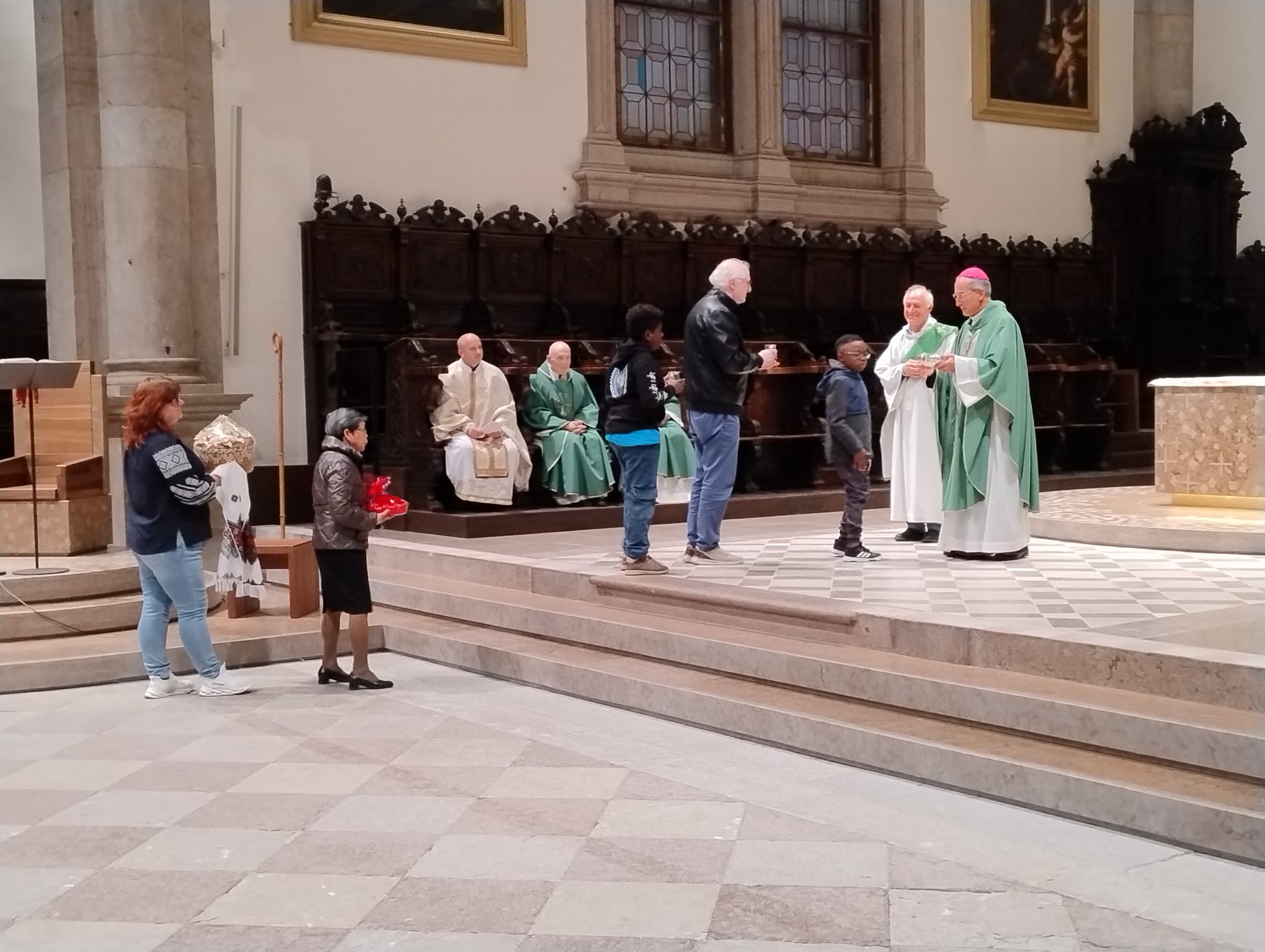 E poi le quattro intenzioni della preghiera universale in filippino, in un francese che certamente non era quello della Sorbonne, in spagnolo, in ucraino. E soprattutto i volti sorridenti con cui due bambini di colore hanno partecipato alla processione offertoriale, strappando un sorriso anche al Vescovo nelle poche parole di presentazione.