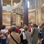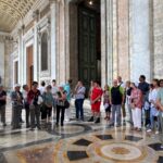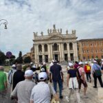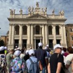 Il nostro cammino verso San Giovanni in Laterano ha subito qualche rallentamento: il proverbiale traffico romano ci ha messi alla prova, ma anche questo fa parte del pellegrinaggio. In pullman, don Fabiano ha colto l’occasione per raccontarci qualcosa sulla basilica che ci attendeva: San Giovanni in Laterano non è solo una delle quattro basiliche papali, ma è la cattedrale di Roma, la “madre di tutte le chiese”, sede ufficiale del Vescovo di Roma, il Papa. È qui che la Chiesa ha mosso i suoi primi passi ufficiali nella storia, dopo i tempi delle persecuzioni.