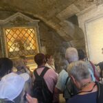 Durante la visita, ci è stato mostrato anche il luogo originario della sepoltura di San Sebastiano, situato esattamente tre metri sopra l’attuale tomba. Questo dettaglio archeologico ci ha permesso di comprendere ancora meglio la stratificazione storica e la profonda venerazione riservata fin dall’antichità a questo martire romano.