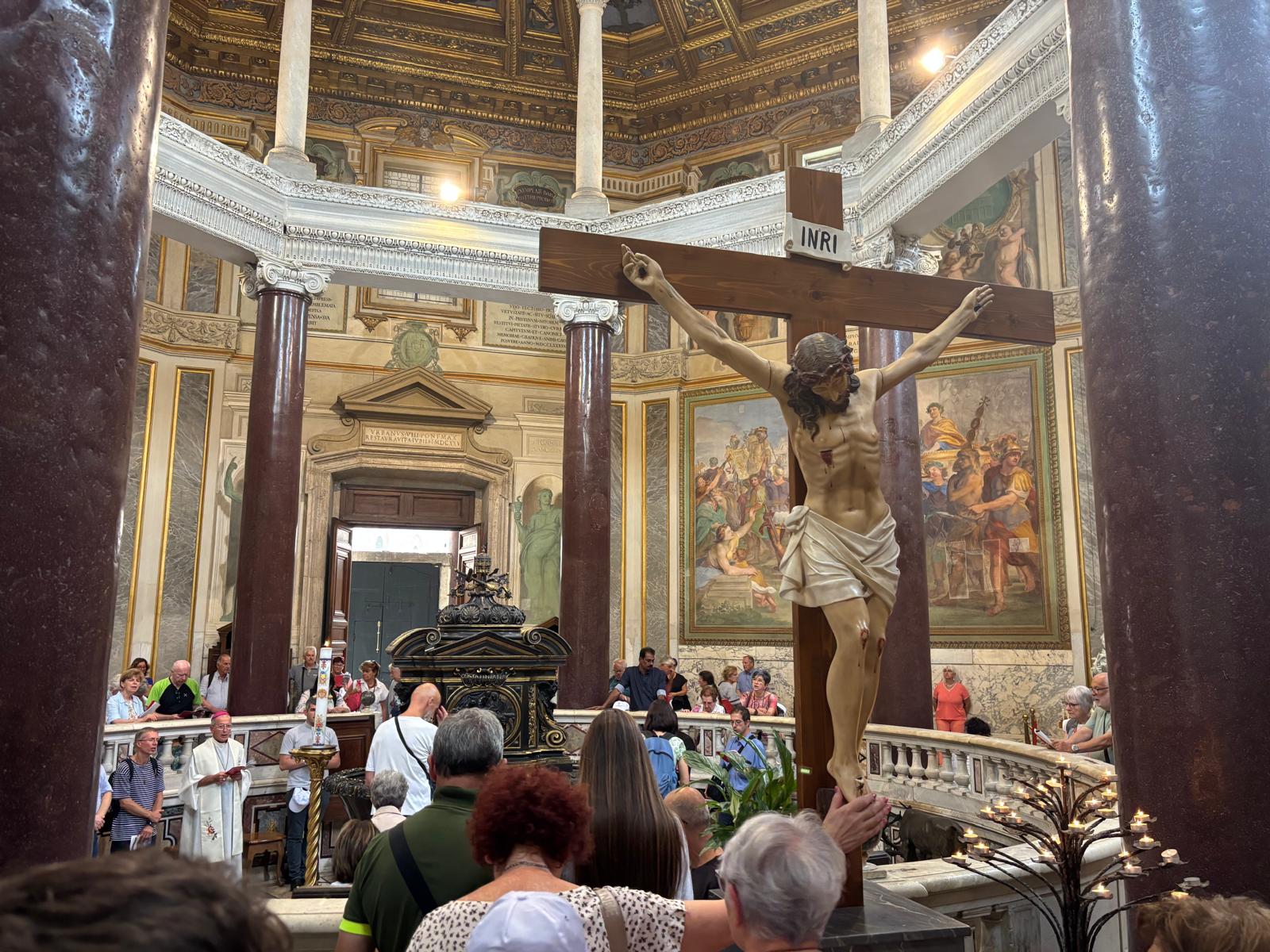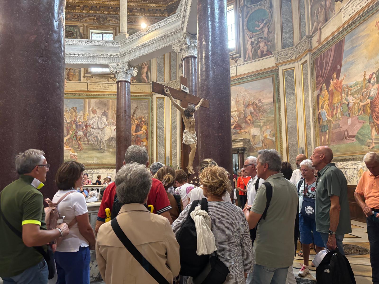 Dopo il pranzo nei pressi del Colosseo, abbiamo ripreso il cammino a piedi lungo la via dei Fori Imperiali, lasciandoci alle spalle i resti imponenti dell’antica Roma. Passo dopo passo, immersi nella storia, siamo giunti al Carcere Mamertino, luogo di memoria forte e toccante: secondo la tradizione, qui furono rinchiusi San Pietro e San Paolo prima del martirio. Visitare quel luogo umile, scavato nella roccia, ci ha messi in contatto con la radicalità della fede degli apostoli e con la verità della testimonianza cristiana, fatta anche di sofferenza e fedeltà fino alla fine.