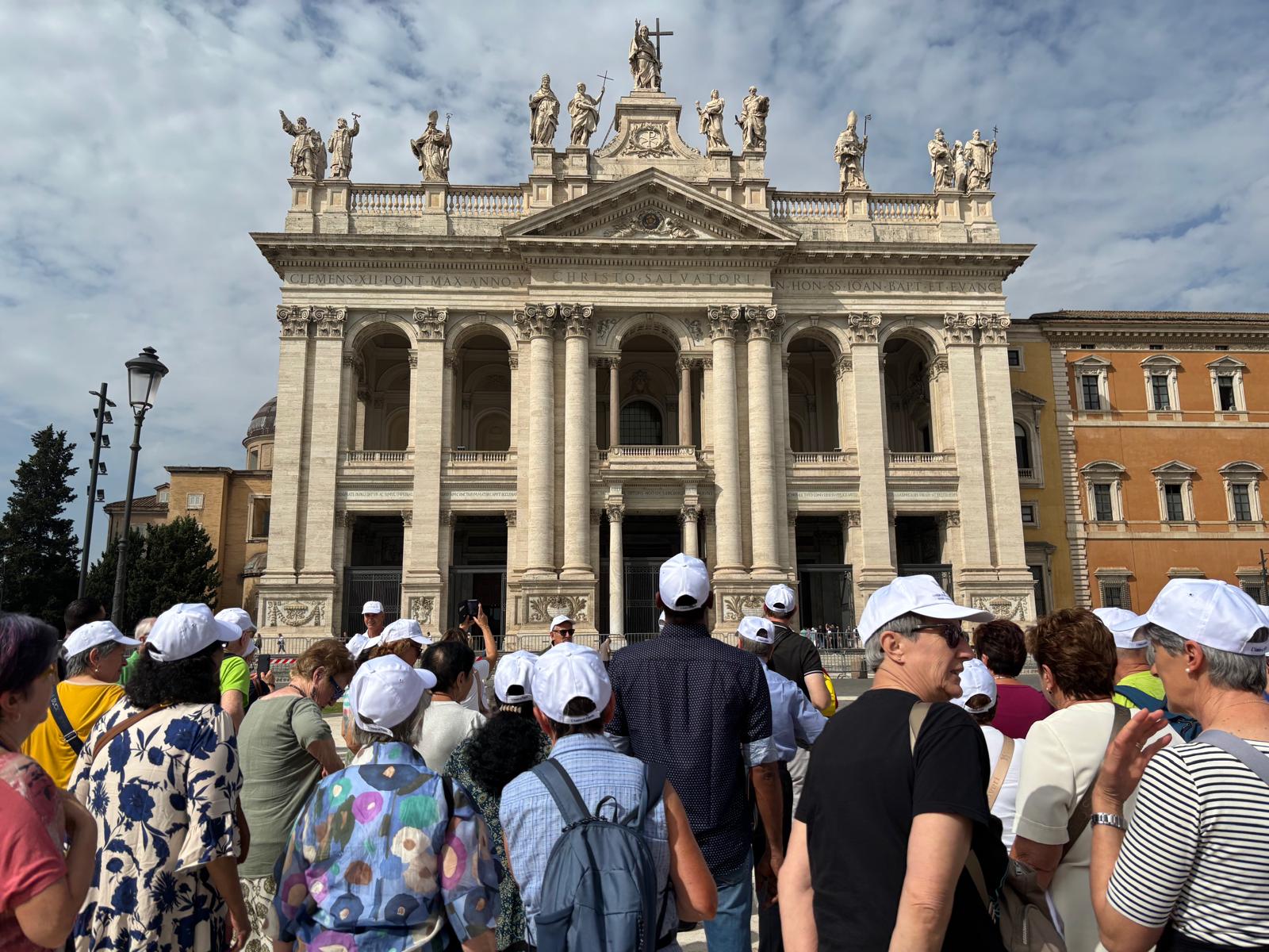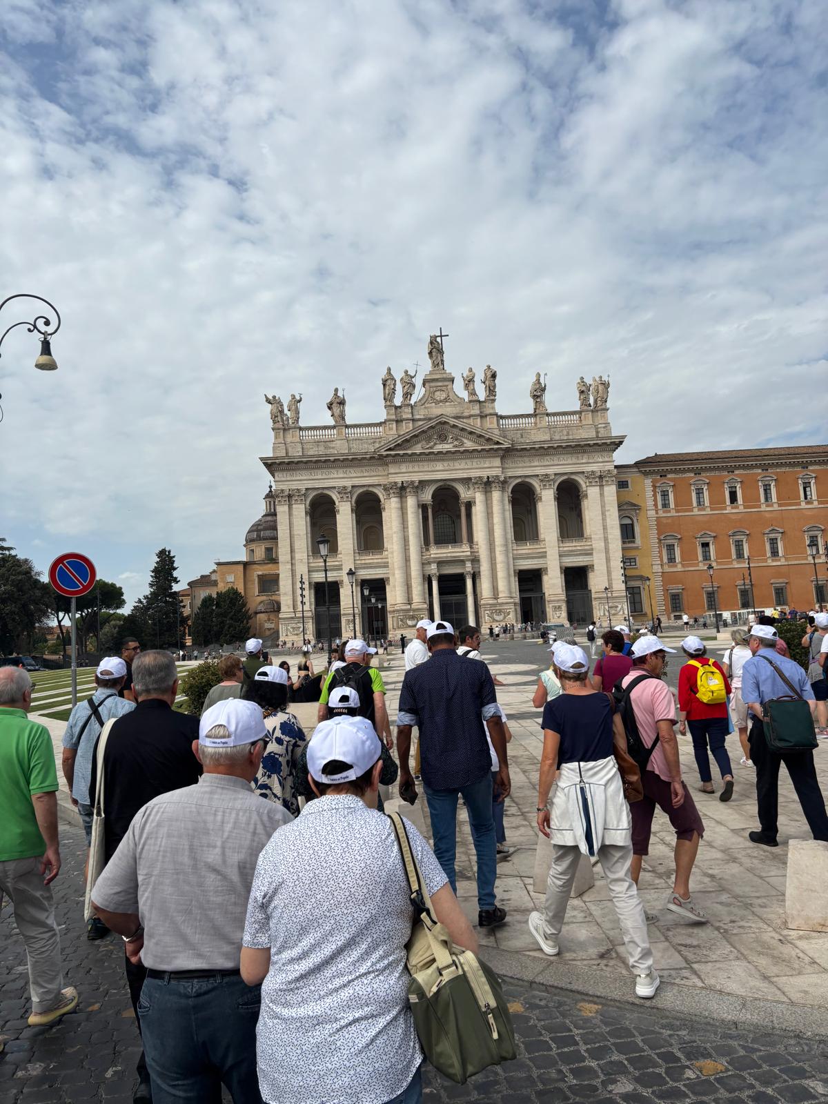 Il nostro cammino verso San Giovanni in Laterano ha subito qualche rallentamento: il proverbiale traffico romano ci ha messi alla prova, ma anche questo fa parte del pellegrinaggio. In pullman, don Fabiano ha colto l’occasione per raccontarci qualcosa sulla basilica che ci attendeva: San Giovanni in Laterano non è solo una delle quattro basiliche papali, ma è la cattedrale di Roma, la “madre di tutte le chiese”, sede ufficiale del Vescovo di Roma, il Papa. È qui che la Chiesa ha mosso i suoi primi passi ufficiali nella storia, dopo i tempi delle persecuzioni.