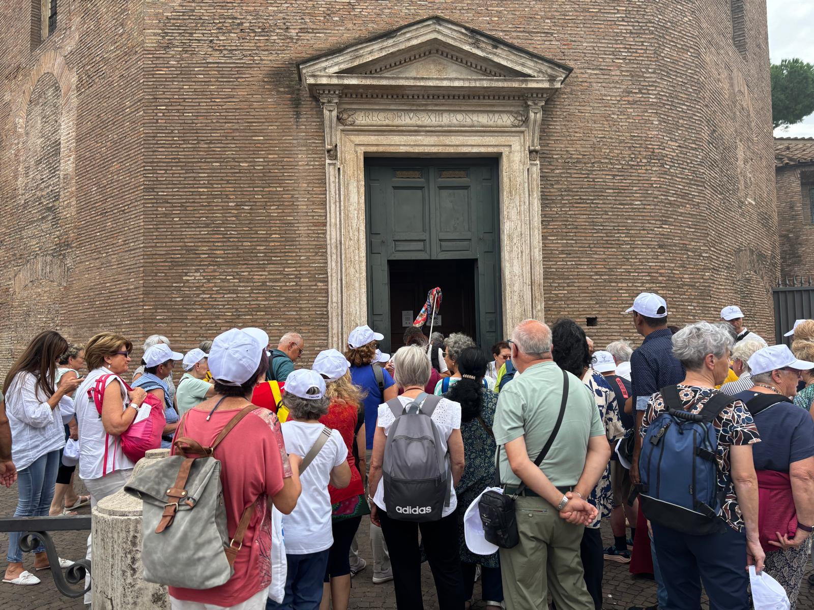 Durante il tragitto dall’hotel verso il Vaticano, abbiamo vissuto un primo momento di raccoglimento e preghiera, preparandoci spiritualmente all’incontro con il Santo Padre. Don Fabiano ci ha guidati in una breve riflessione sulla figura di sant’Elena, madre dell’imperatore Costantino, e sul valore delle reliquie da lei ritrovate, in particolare quella della Croce di Gesù.