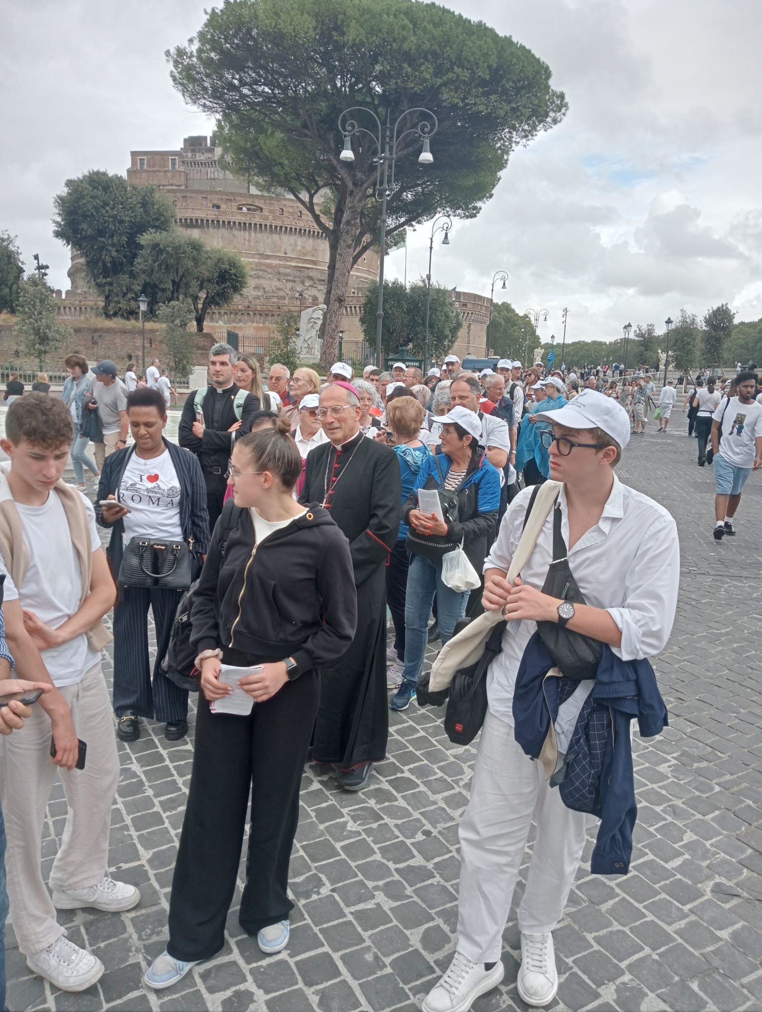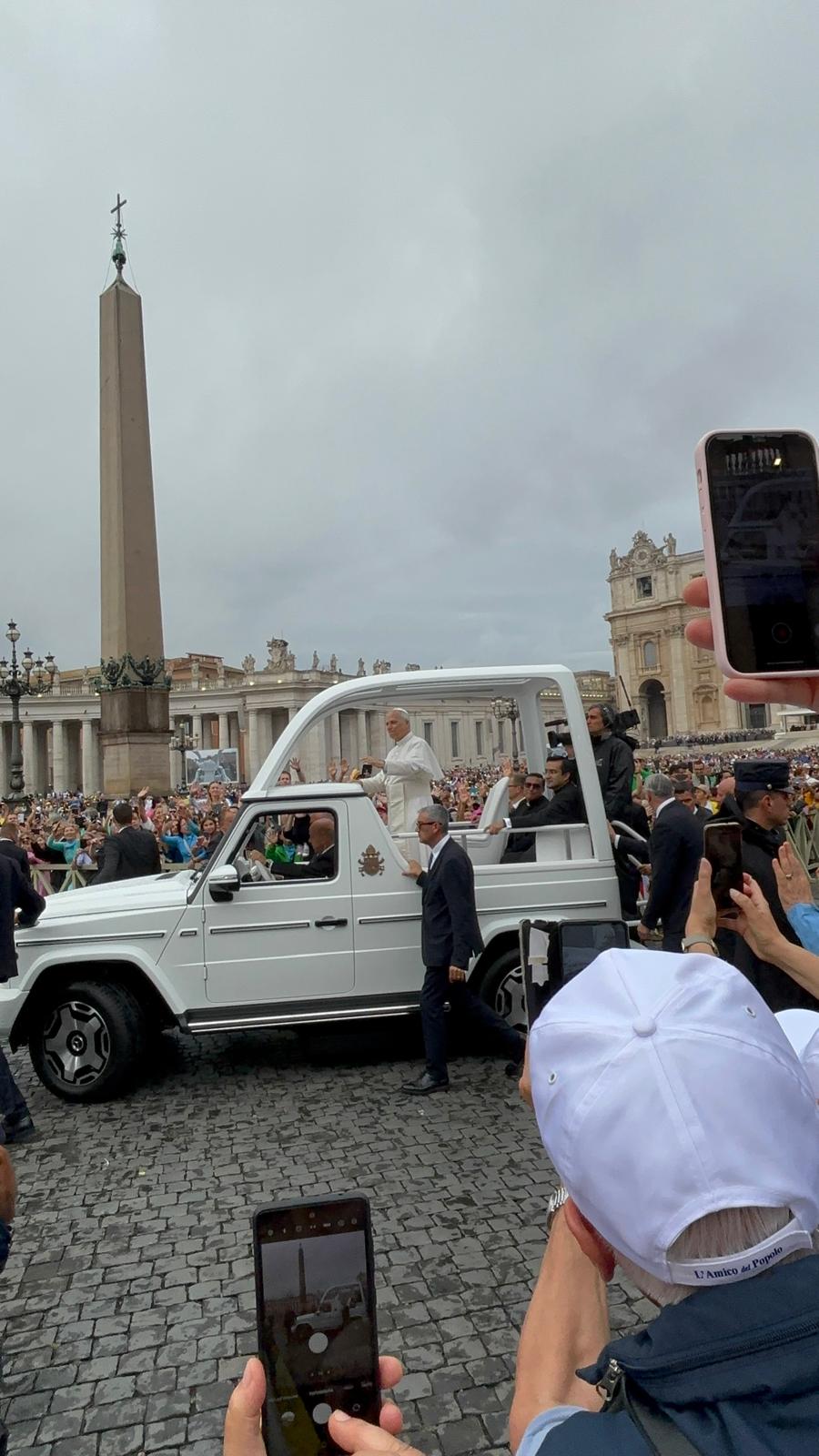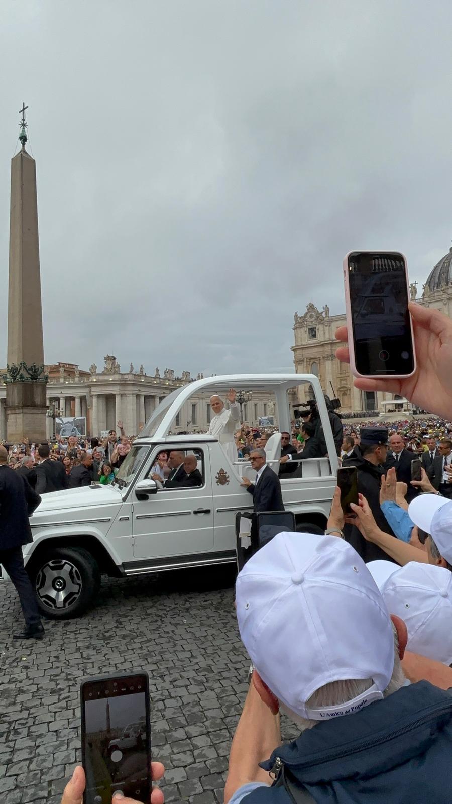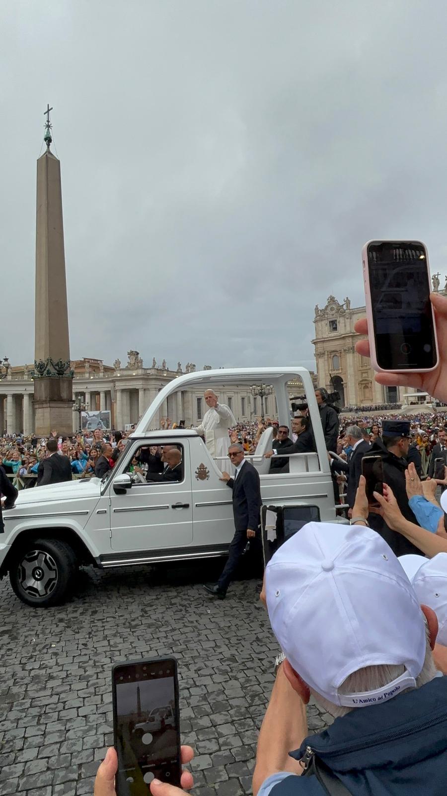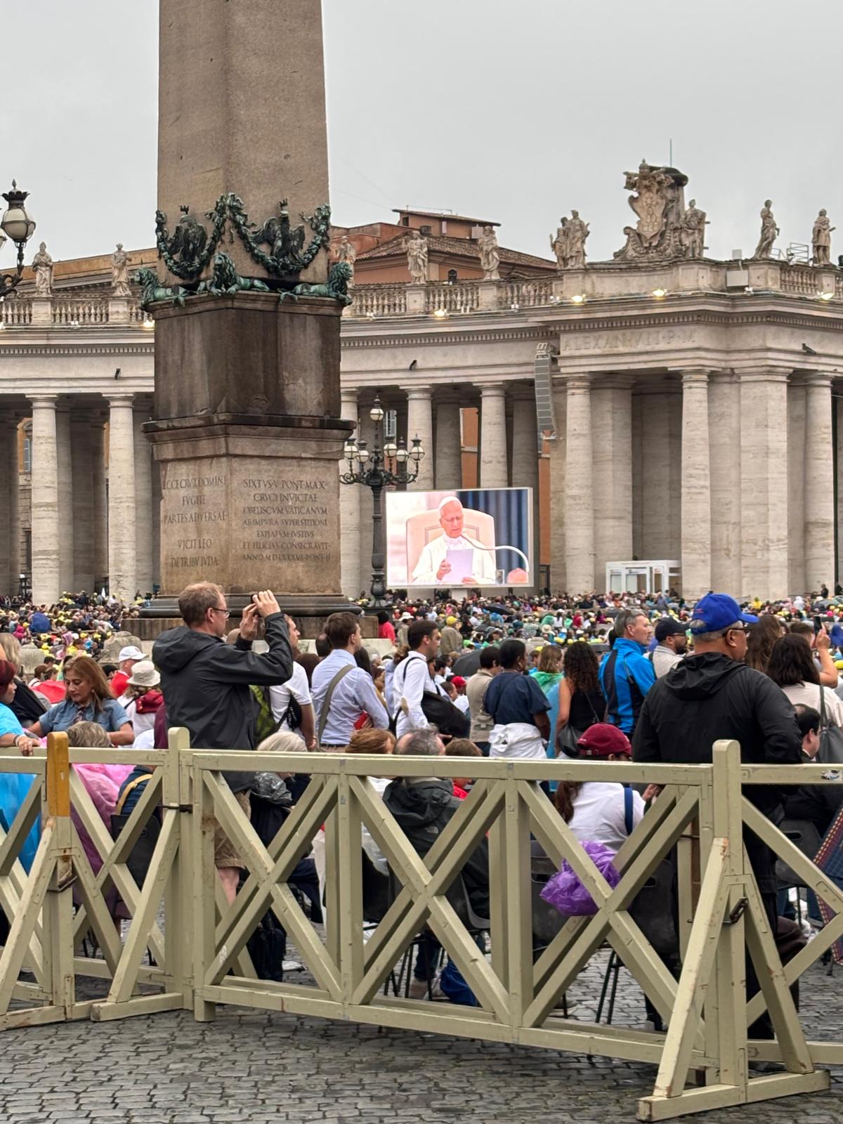 Durante l’udienza in un’affollata Piazza San Pietro siamo stati graziati dalla pioggia. Abbiamo avuto la fortuna di vedere passare accanto a noi la Papamobile e di poter vedere da vicino Papa Leone. La terza giornata del nostro pellegrinaggio ha avuto un centro preciso e indimenticabile: l’incontro con il Santo Padre durante l’Udienza generale.