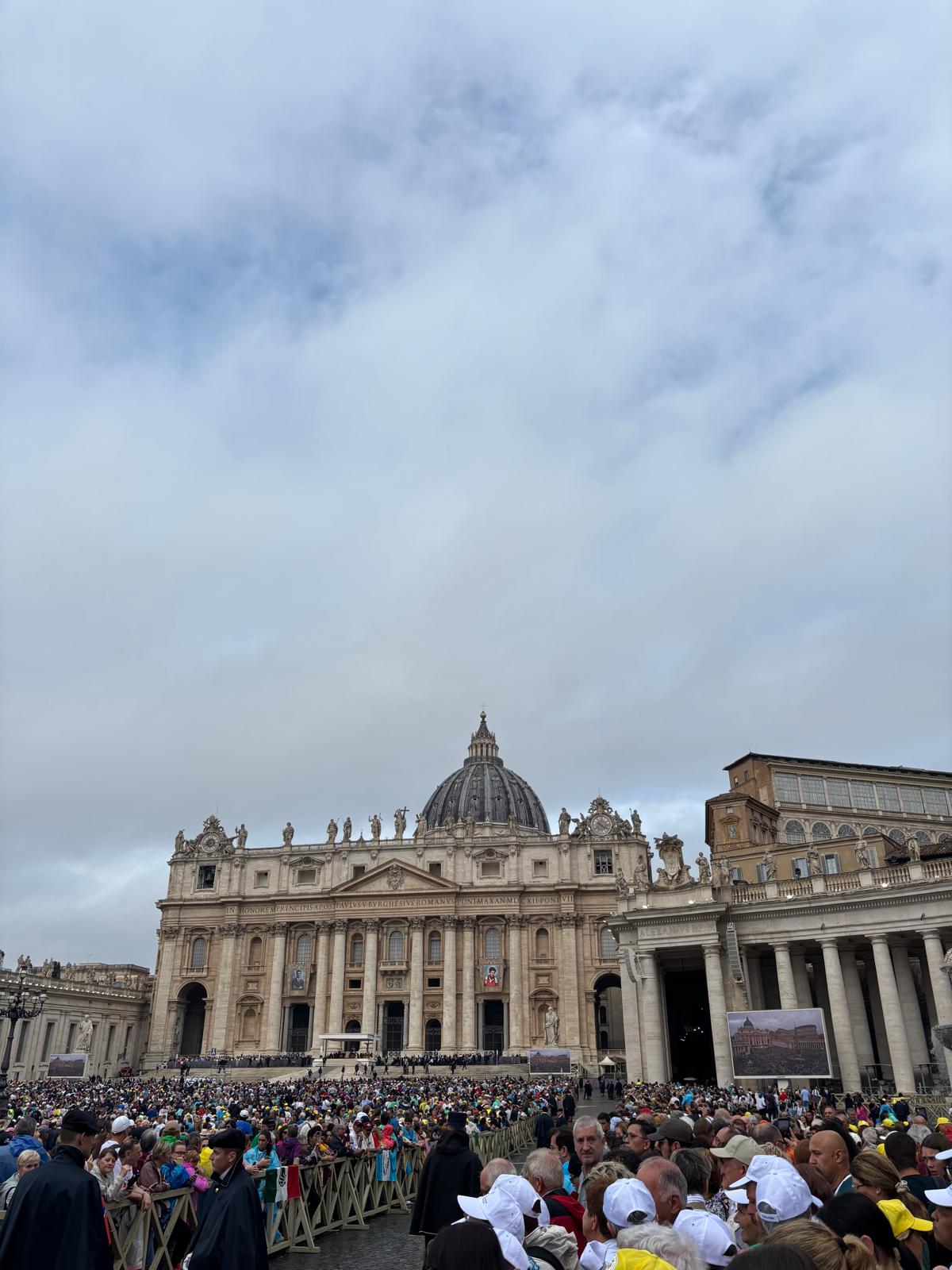 La terza giornata del nostro pellegrinaggio si è aperta sotto un cielo nuvoloso e carico di pioggia, quasi a ricordarci che la bellezza di certi momenti va spesso cercata oltre le apparenze. Oggi trascorreremo l’intera giornata in uno dei luoghi più significativi della nostra fede: piazza San Pietro, il cuore del cattolicesimo.