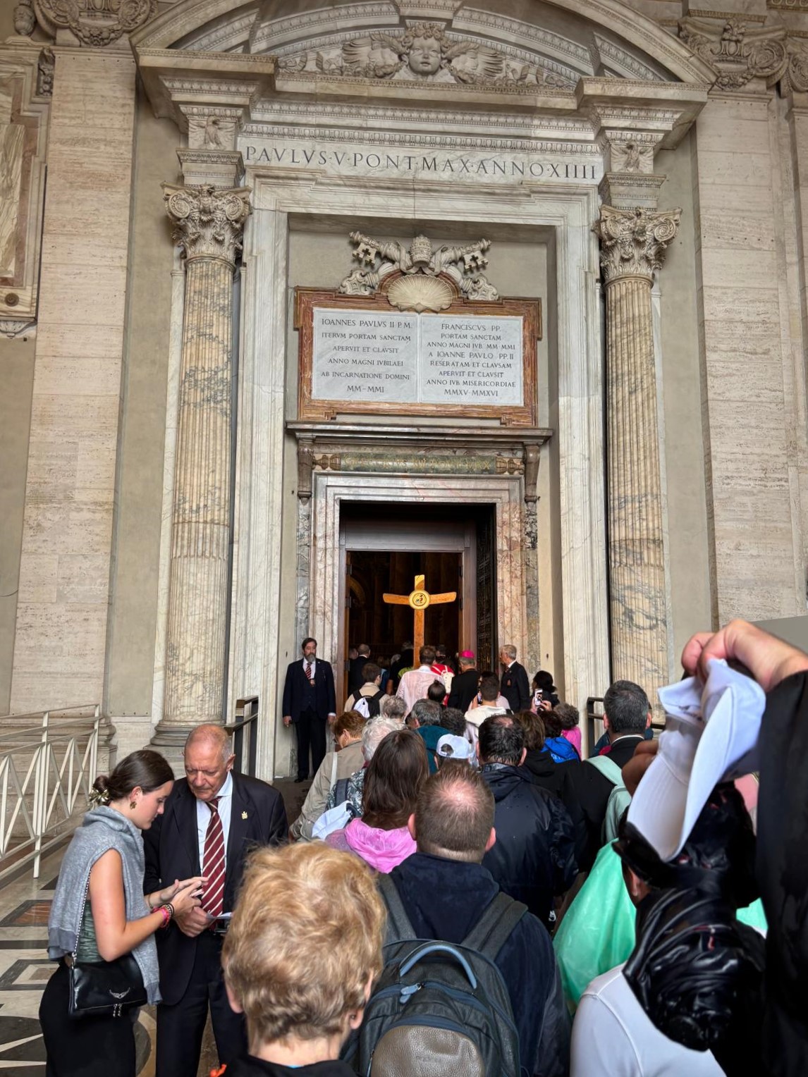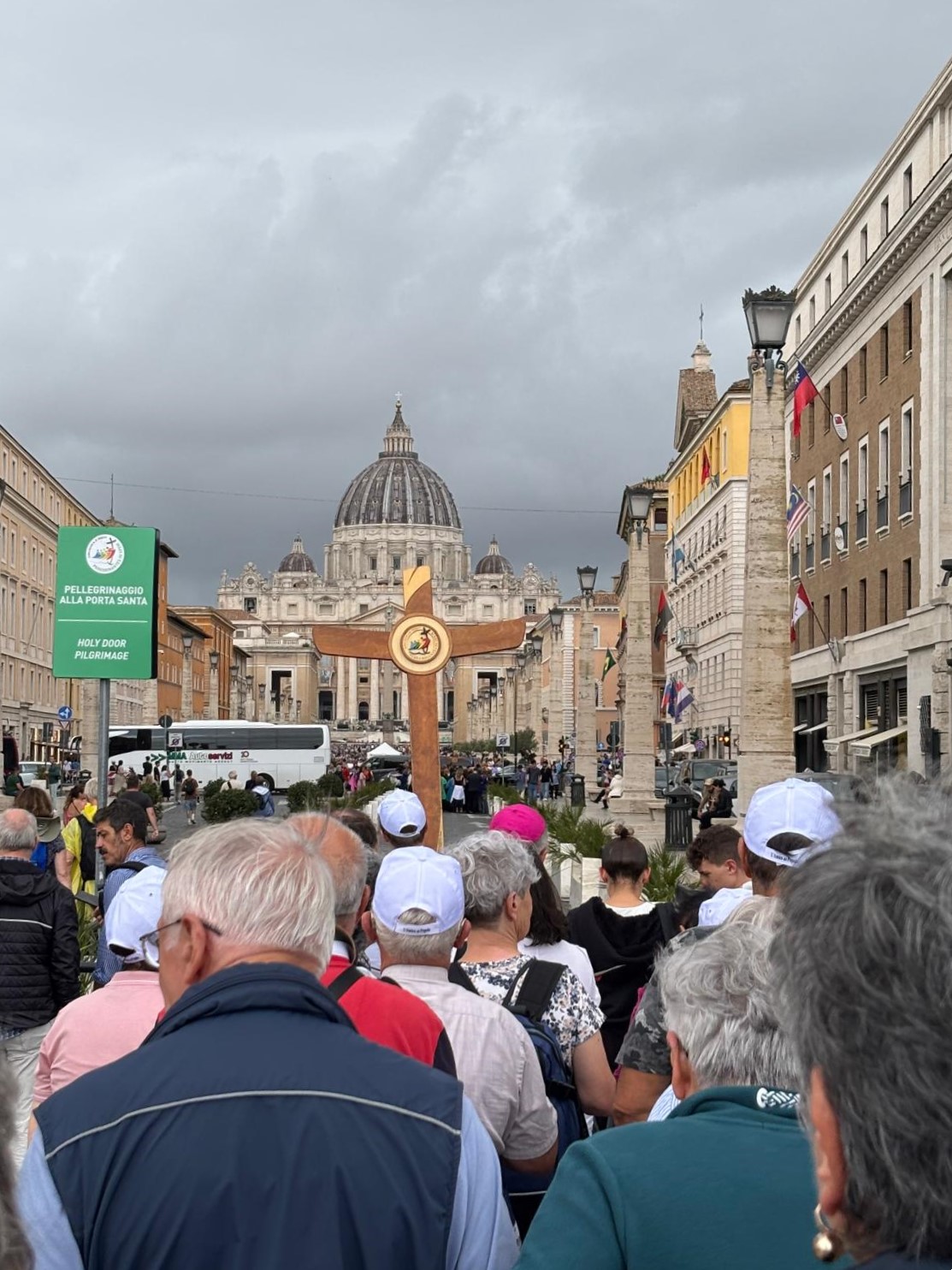 Il pomeriggio della terza giornata del nostro pellegrinaggio ci ha regalato un’esperienza intensa, autentica, che rimarrà impressa nel cuore di ciascuno. Dopo pranzo, ci siamo ritrovati in Piazza Pia, pronti a metterci in cammino verso la Porta Santa della Basilica di San Pietro. A guidare i nostri passi, una croce portata con devozione da uno dei giovani del gruppo: un segno semplice ma potente della nostra fede condivisa.