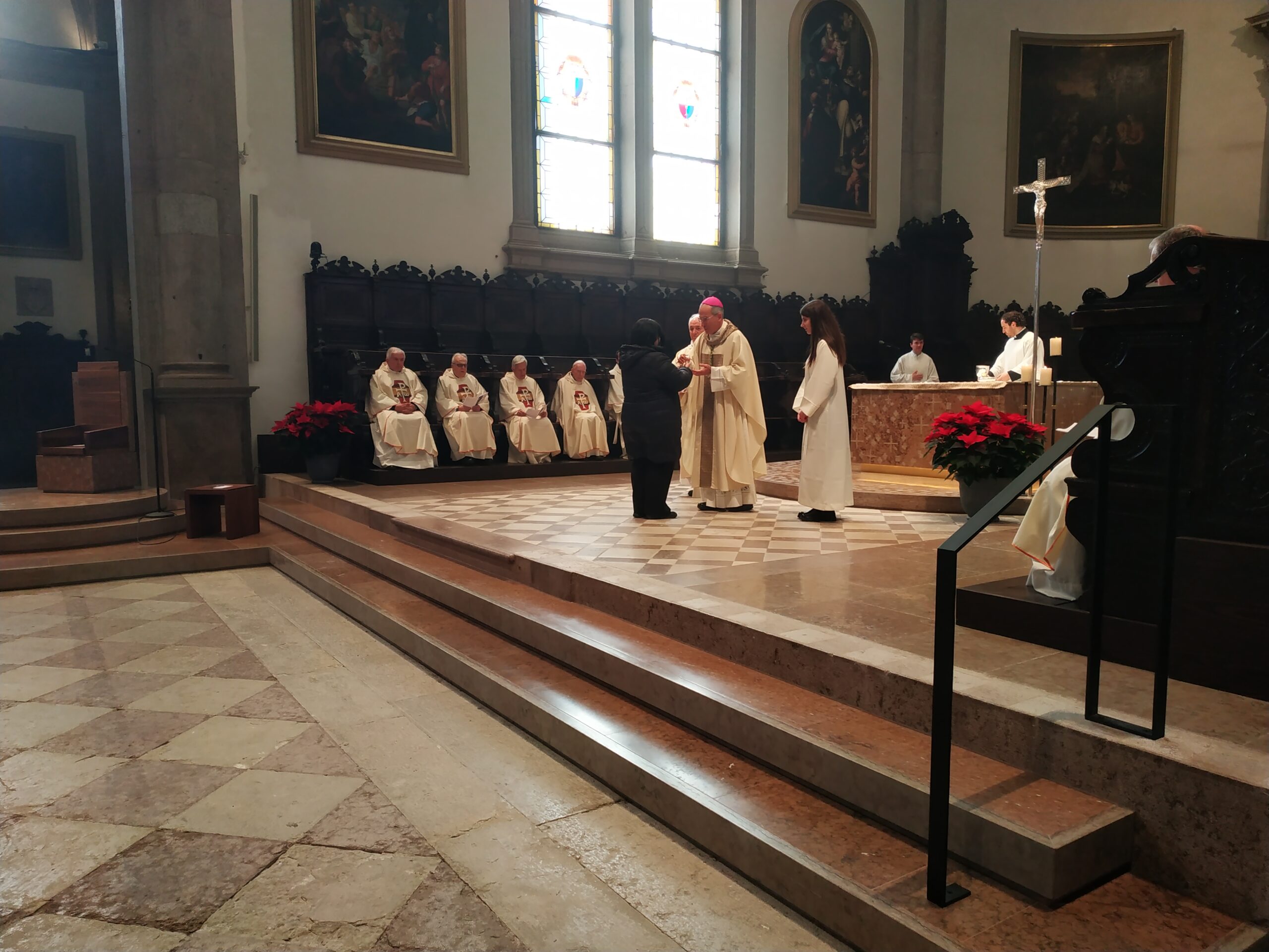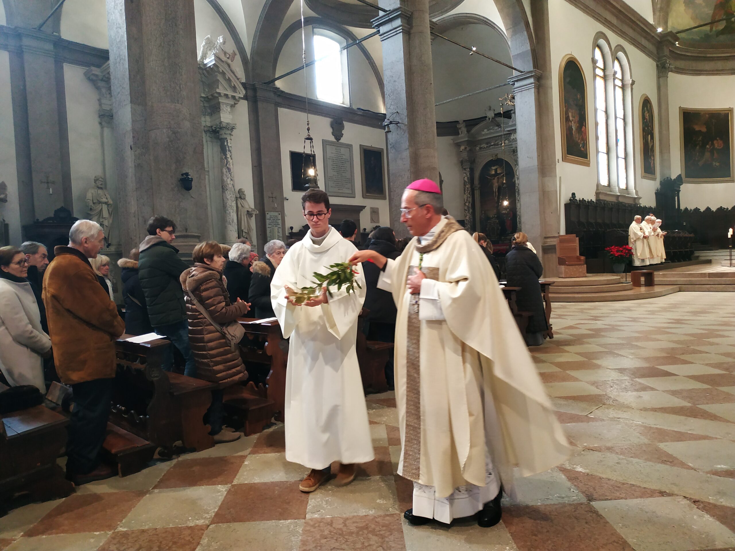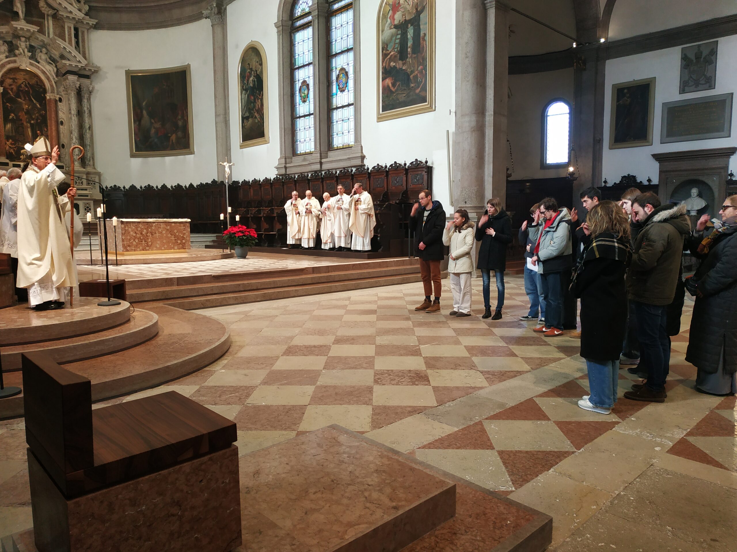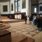 Sulle prime file dei banchi si distinguevano bene alcuni adolescenti e giovani, in rappresentanza dei due gruppi che hanno partecipato al giubileo degli adolescenti in primavera e a quello dei giovani durante l’estate. Il Vescovo ha ricordato: «Con gli adolescenti abbiamo vissuto anche l’affettuoso e riconoscente saluto a papa Francesco. Con i giovani abbiamo conosciuto, a Tor Vergata, papa Leone in mezzo a una fiumana di giovani venuti da tutto il mondo. Mi sembra che con loro, in modo inedito e promettente, abbiamo imparato a venerare il dono e il mistero della vita, radicati nella consegna di Gesù: “Gratuitamente avete ricevuto, gratuitamente date”».
