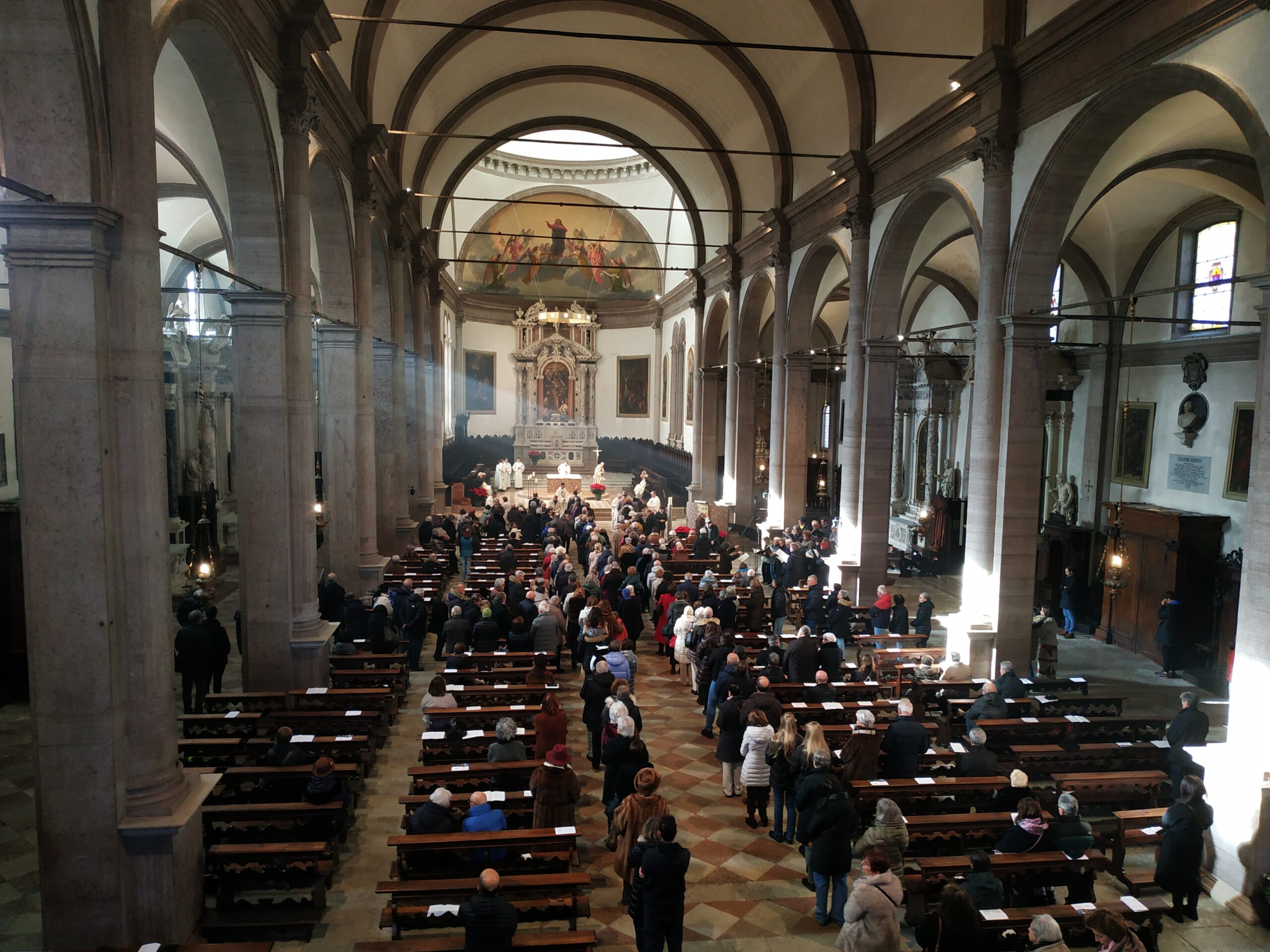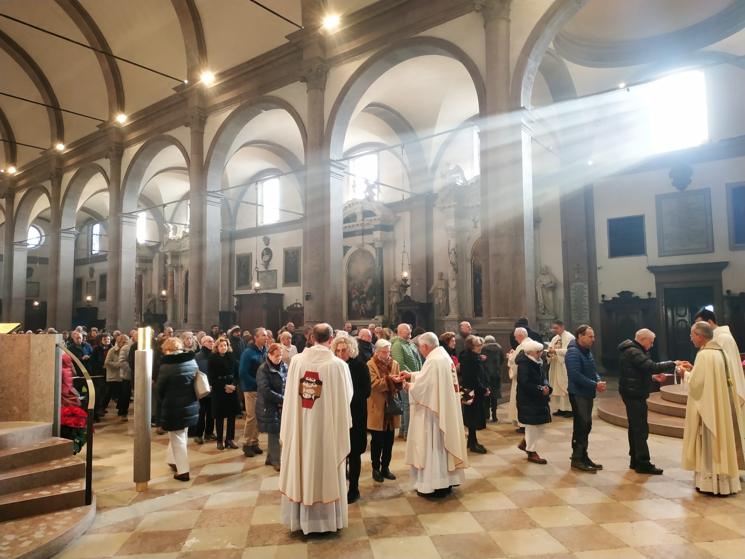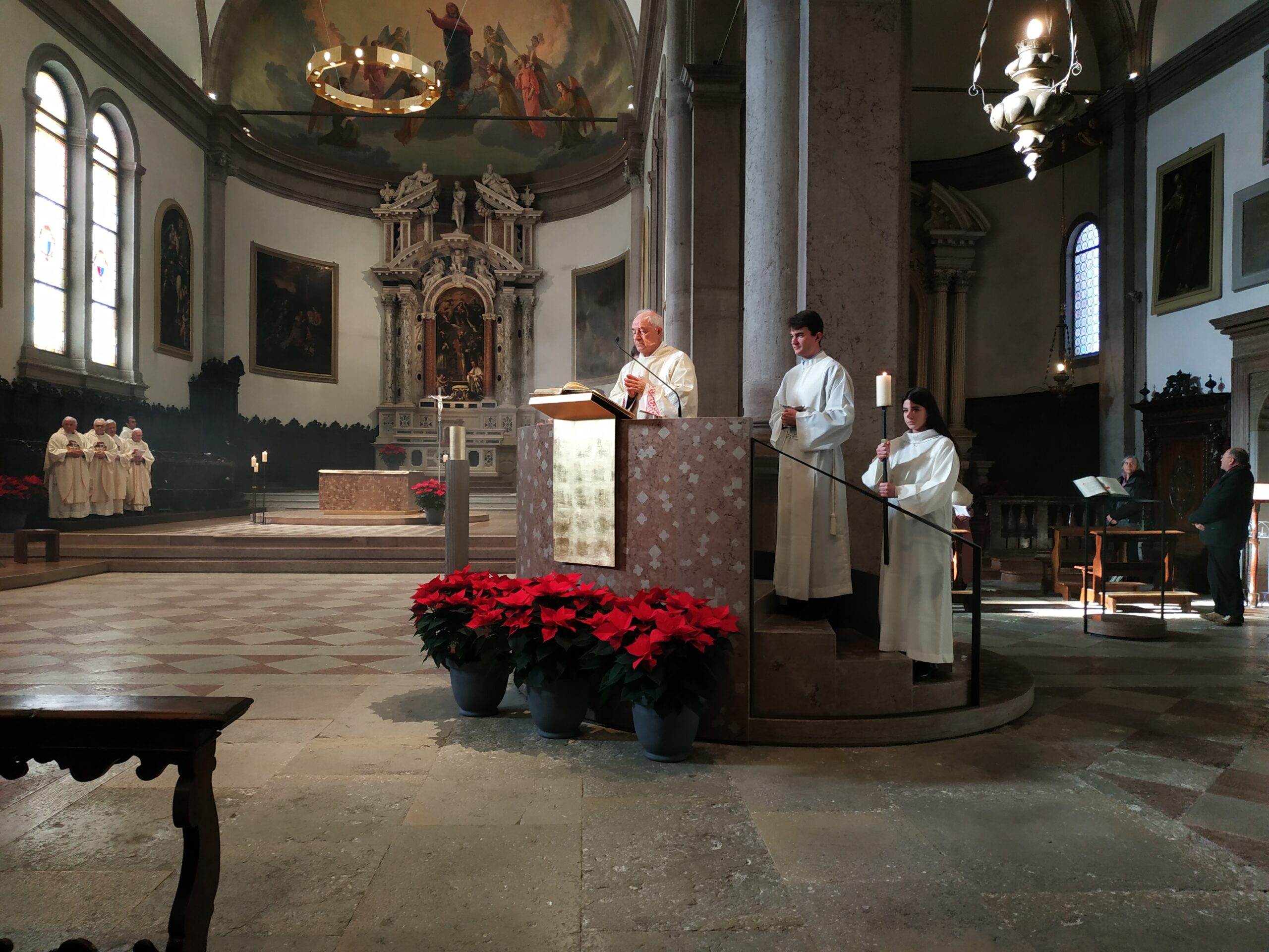 Sulle prime file dei banchi si distinguevano bene alcuni adolescenti e giovani, in rappresentanza dei due gruppi che hanno partecipato al giubileo degli adolescenti in primavera e a quello dei giovani durante l’estate. Il Vescovo ha ricordato: «Con gli adolescenti abbiamo vissuto anche l’affettuoso e riconoscente saluto a papa Francesco. Con i giovani abbiamo conosciuto, a Tor Vergata, papa Leone in mezzo a una fiumana di giovani venuti da tutto il mondo. Mi sembra che con loro, in modo inedito e promettente, abbiamo imparato a venerare il dono e il mistero della vita, radicati nella consegna di Gesù: “Gratuitamente avete ricevuto, gratuitamente date”».