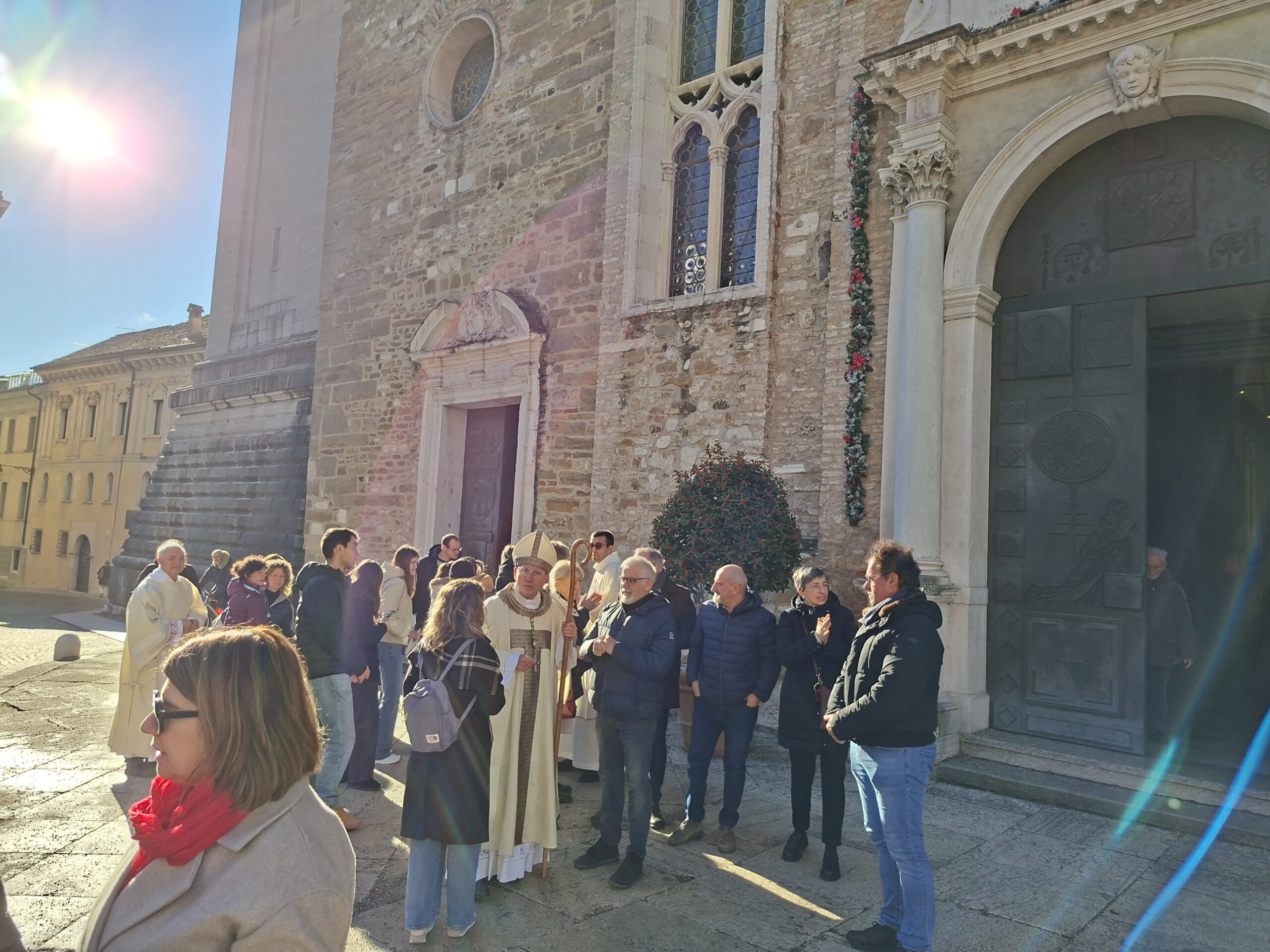 Il rendimento è diventato canto alla fine della celebrazione, attraverso le parole del Magnificat. Il gruppo di adolescenti e giovani, dopo la benedizione, ha accompagnato il Vescovo e i concelebranti nella processione finale, fin sul sagrato della Cattedrale: «Così il Giubileo, chiuso nel simbolo delle porte sante attraversate a Roma, rimane aperto nel nostro vivere di ogni giorno».