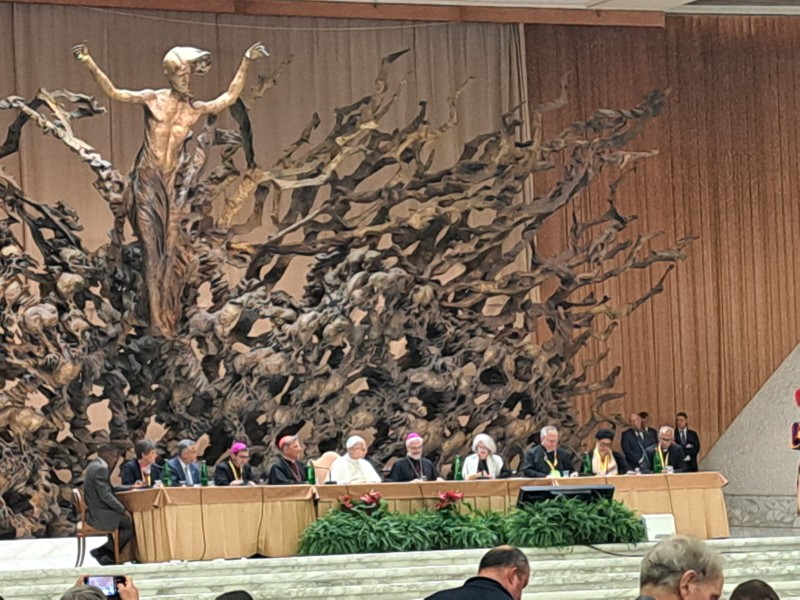 All’osservatore non sfuggiva la presenza di tanti volti evidentemente non europei; il gioco delle lingue lo ha confermato. Al momento della preghiera plurilingue, è seguita una serie di testimonianze in inglese, francese, brasileiro, spagnolo, italiano. Si è vissuto il convergere di tante esperienze sinodali vissute in varie parti del mondo. Parte del primo pomeriggio è stato anche l’incontro con papa Leone XIV che, come Pietro, ha raccolto nella sua “rete” le relazioni dei “sette continenti” ecclesiali: Medioriente, Estremo Oriente, Africa, Oceania, America latina, Nordamerica, Europa. È stata una sorpresa ascoltare le sue brevi e vivaci risposte, di cui una condita da una simpatica battuta, passando agevolmente dall’inglese allo spagnolo, all’italiano.