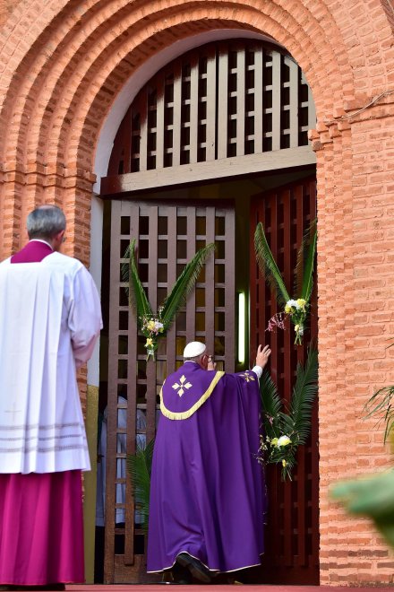 Nella foto: 29 novembre 2015 – Papa Francesco apre la porta santa nella cattedrale di Bangui, Repubblica Centroafricana.