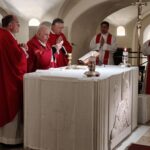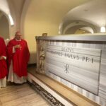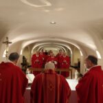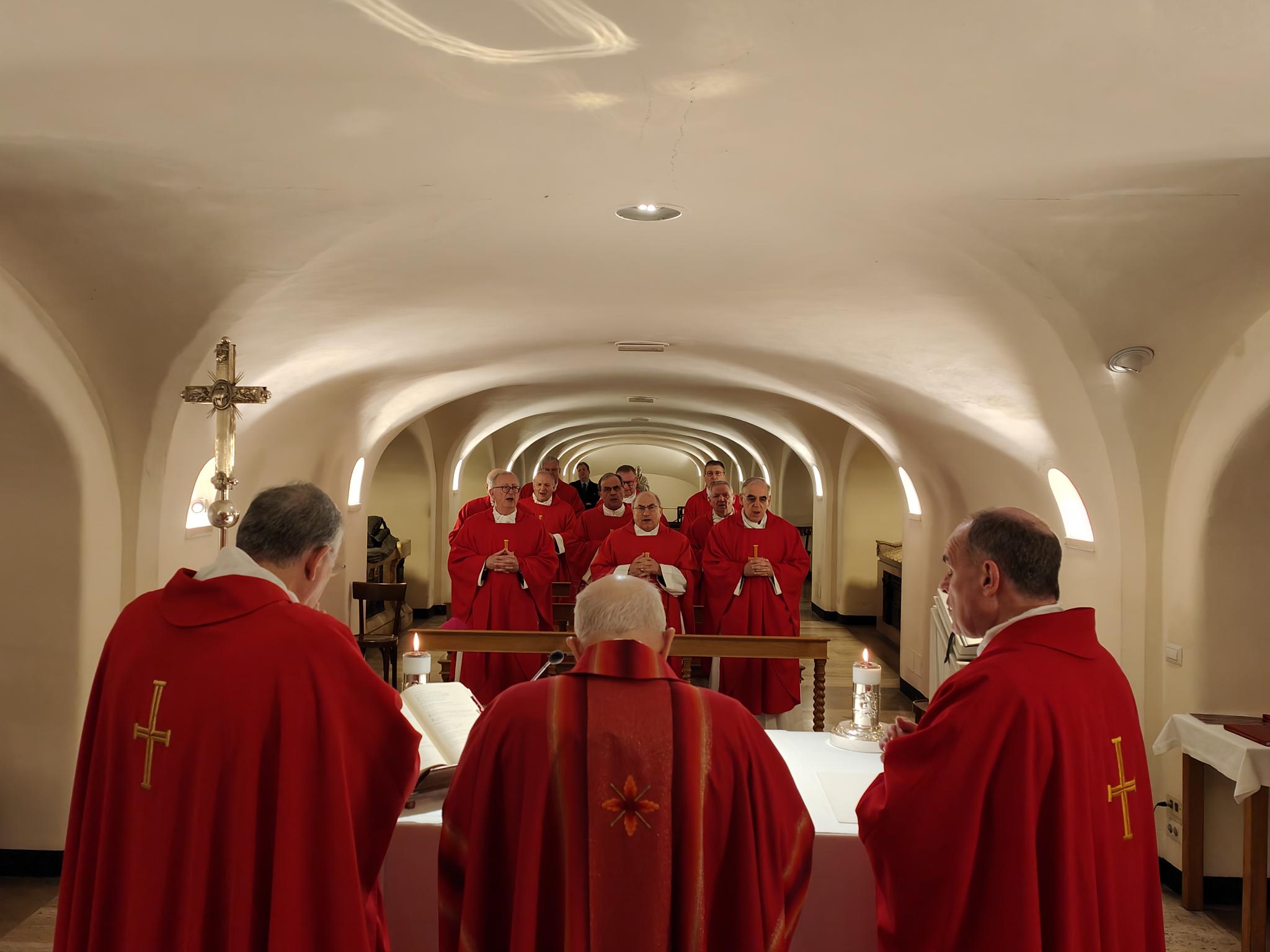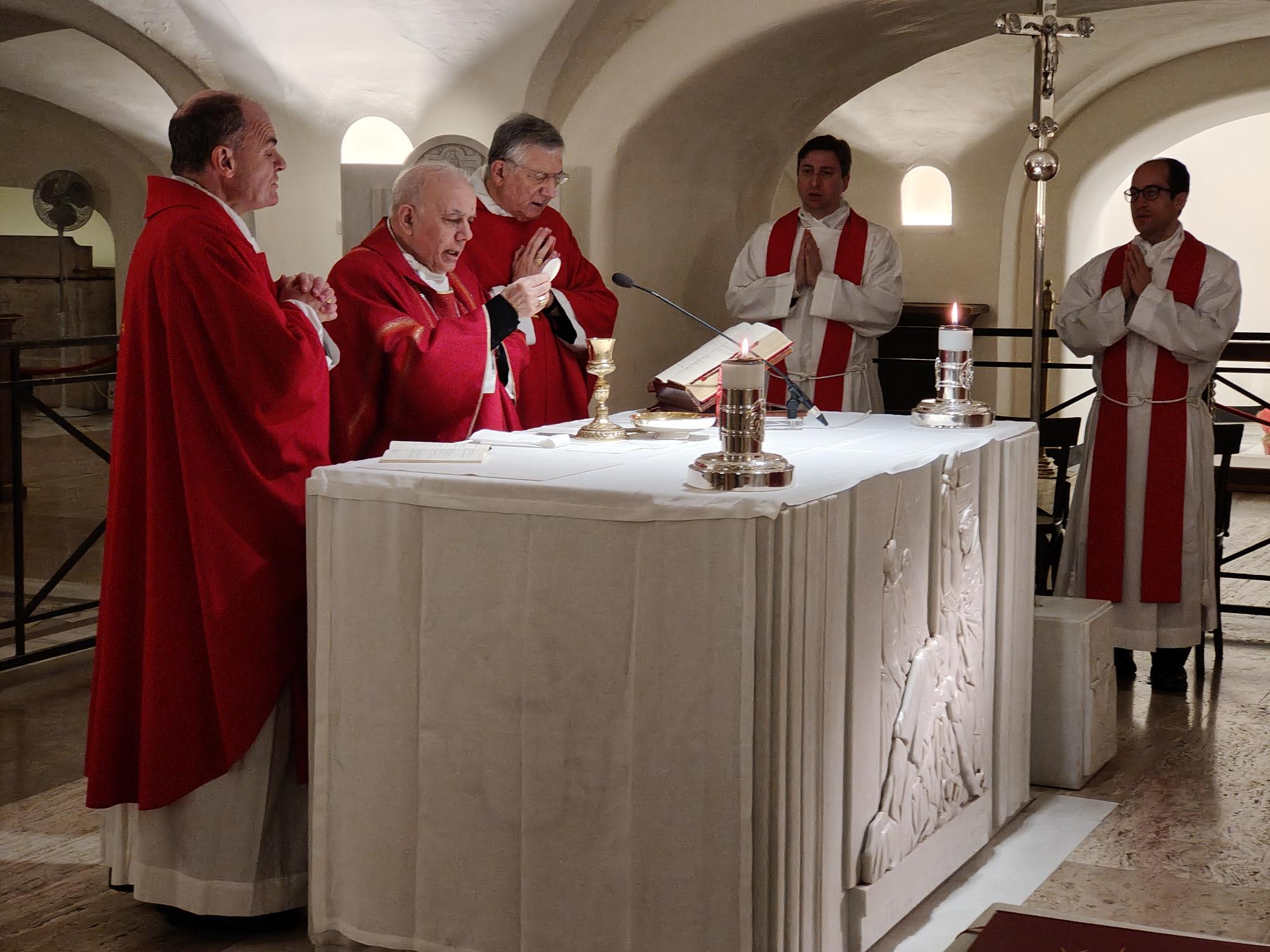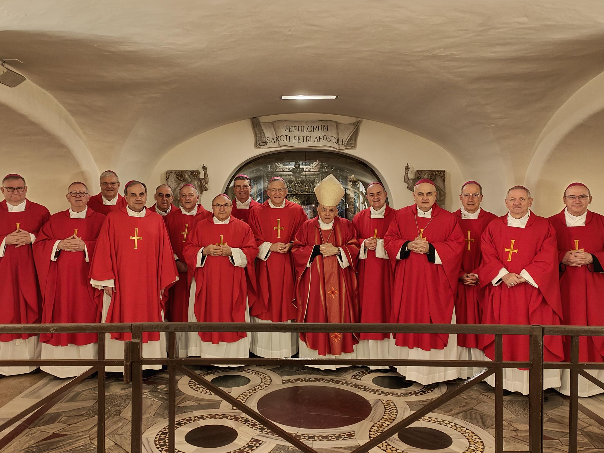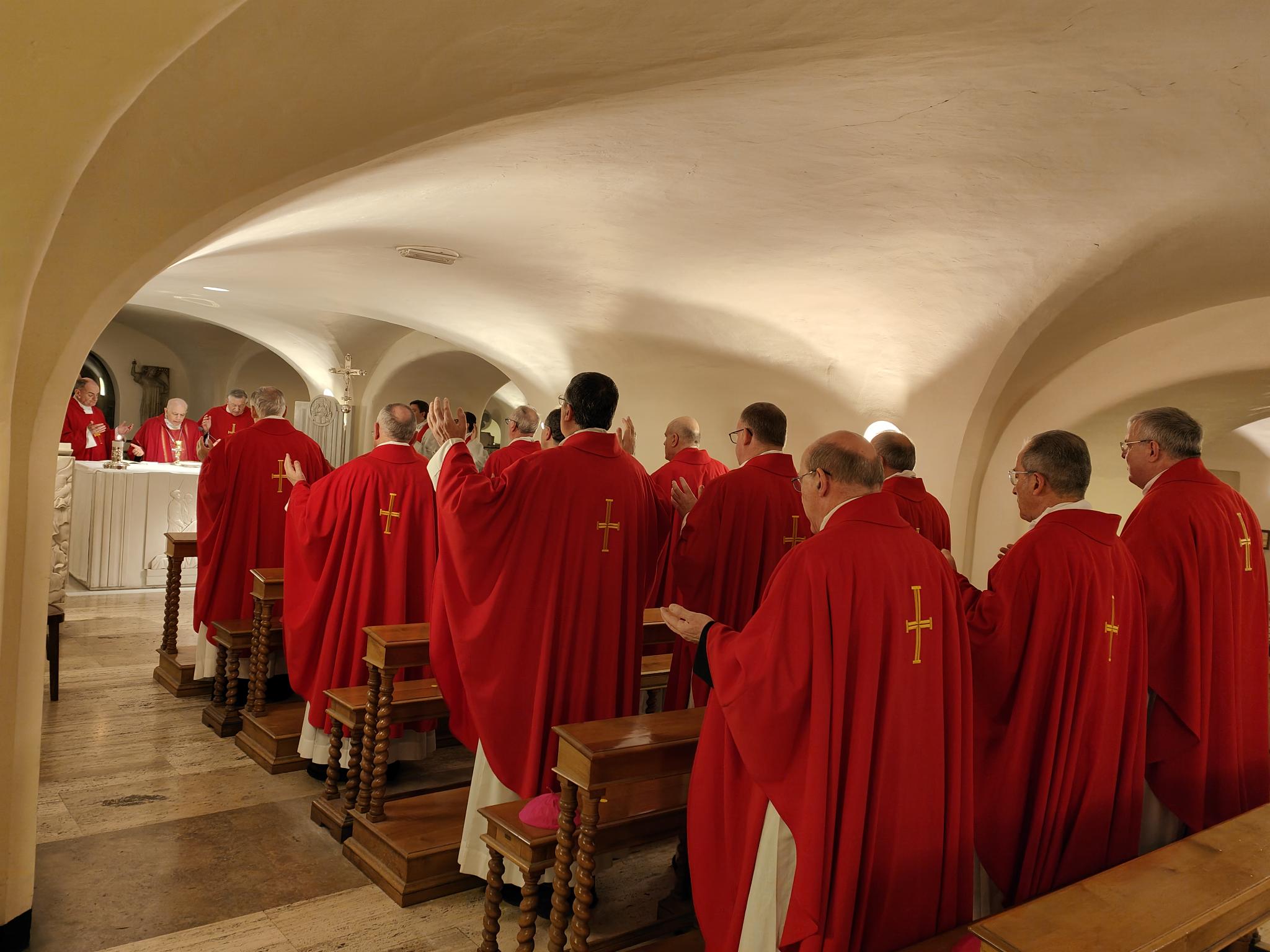 Poco prima dell’incontro con Papa Francesco i Vescovi del Triveneto avevano concelebrato l’Eucaristia presso la tomba di san Pietro, lì hanno cantato il Credo e visitato le tombe dei Papi. «Celebrare vicino alla tomba di san Pietro – ha detto l’Arcivescovo di Udine Andrea Bruno Mazzocato che ha presieduto la santa Messa – è stata l’occasione per ricordare che da lì parte la nostra fede e parte anche il nostro ministero di Vescovi che continuano ad annunciare la stessa fede in Cristo, una volta che l’abbiamo fatta ancora nostra e rinnovata».