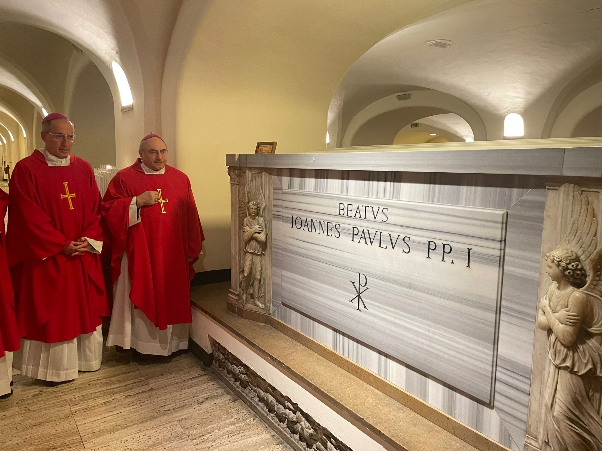 «Questa esperienza che stiamo vivendo – ha detto il Vescovo di Padova Claudio Cipolla – è molto arricchente per noi, sia per il confronto che abbiamo con la Chiesa universale sia perché tra di noi ci confermiamo e ci conosciamo di più realizzando un servizio di comunione. Celebrando presso la Tomba di san Pietro abbiamo ricordato la nostra comune fede e così la nostra comunione non viene soltanto dalla nostra amicizia e fraternità ma risale al primo degli Apostoli a cui Gesù ha dato il mandato di servire la Chiesa. È una bella esperienza spirituale».