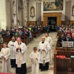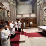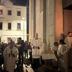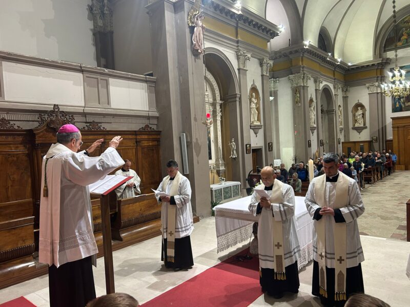 La veglia è iniziata all’esterno della chiesa di Rivamonte, con l’accensione delle candele al cero pasquale. È proseguita con la lettura del Vangelo del giorno. I nuovi parroci hanno asperso l’assemblea con l’acqua benedetta e incensato l’altare.