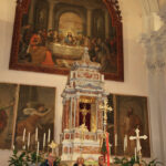 Il pellegrinaggio verso la chiesa arcidiaconale veniva aperto dalle croci processionali ornate di fiori come pure l’arco preparato dal Gruppo degli Alpini davanti alla “porta santa”. Ognuno aveva in mano la conchiglia del viandante assetato di verità, di bontà e di giustizia. Nell’altra mano c’era… un sasso: segno del nostro peccato. Un sasso, da solo, pesa poco, ma l’insieme è pesante, opprimente. Per nostra fortuna Lui, il Signore ci ha liberato dal peccato e continuamente ci dona la forza per andare avanti, con speranza. Nell’omelia il parroco, riprendendo una riflessione di papa Francesco ha invitato i pellegrini alla novità di vita trovando nel Signore la forza e il coraggio della testimonianza.