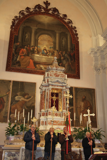 Il pellegrinaggio verso la chiesa arcidiaconale veniva aperto dalle croci processionali ornate di fiori come pure l’arco preparato dal Gruppo degli Alpini davanti alla “porta santa”. Ognuno aveva in mano la conchiglia del viandante assetato di verità, di bontà e di giustizia. Nell’altra mano c’era… un sasso: segno del nostro peccato. Un sasso, da solo, pesa poco, ma l’insieme è pesante, opprimente. Per nostra fortuna Lui, il Signore ci ha liberato dal peccato e continuamente ci dona la forza per andare avanti, con speranza. Nell’omelia il parroco, riprendendo una riflessione di papa Francesco ha invitato i pellegrini alla novità di vita trovando nel Signore la forza e il coraggio della testimonianza.